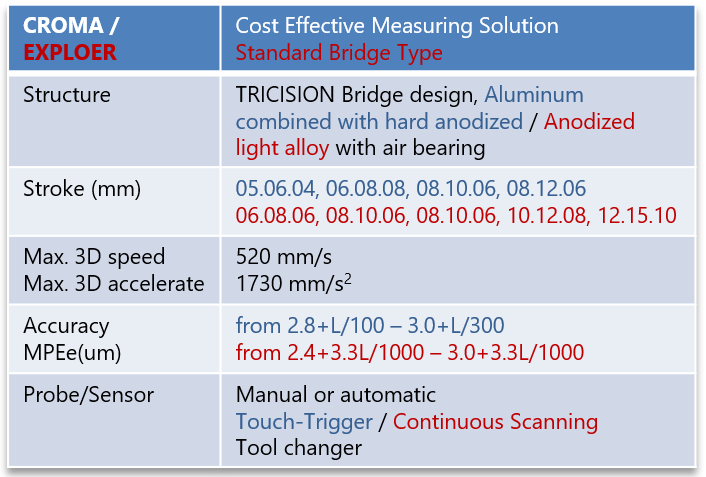 Hexagon CMM จัดลำดับความต้องการในงานควบคุมค่าความถูกต้อง (accuracy) ของเครืื่องในแต่ละโมเดล ตามภาพด้านซ้ายมือ
